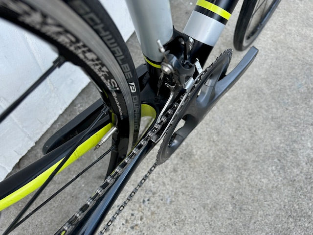 Lovely bike, in very good condition, full carbon frame 51cm, carbon forks and seat post. Frame and fork are clean and unmarked. Running Shimano Ultegra componentry 11x2. Mavic Ksyrium Elite wheels with good Schwalbe Durano Plus 25mm tyres (heaps of clearance for bigger tyres). Ready to ride or ship nationwide. https://road.cc/content/review/126772-neilpryde-zephyr-road-bike